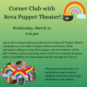 Corner Club: Rainbow Marionettes with Sova Puppet Theater!