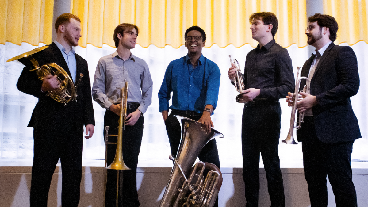 The group features Jon-Michael Taylor and Jacob Rose on trumpet, Aidan Lewis on horn, Will Roberts on trombone, and Mikal Martin on tuba.